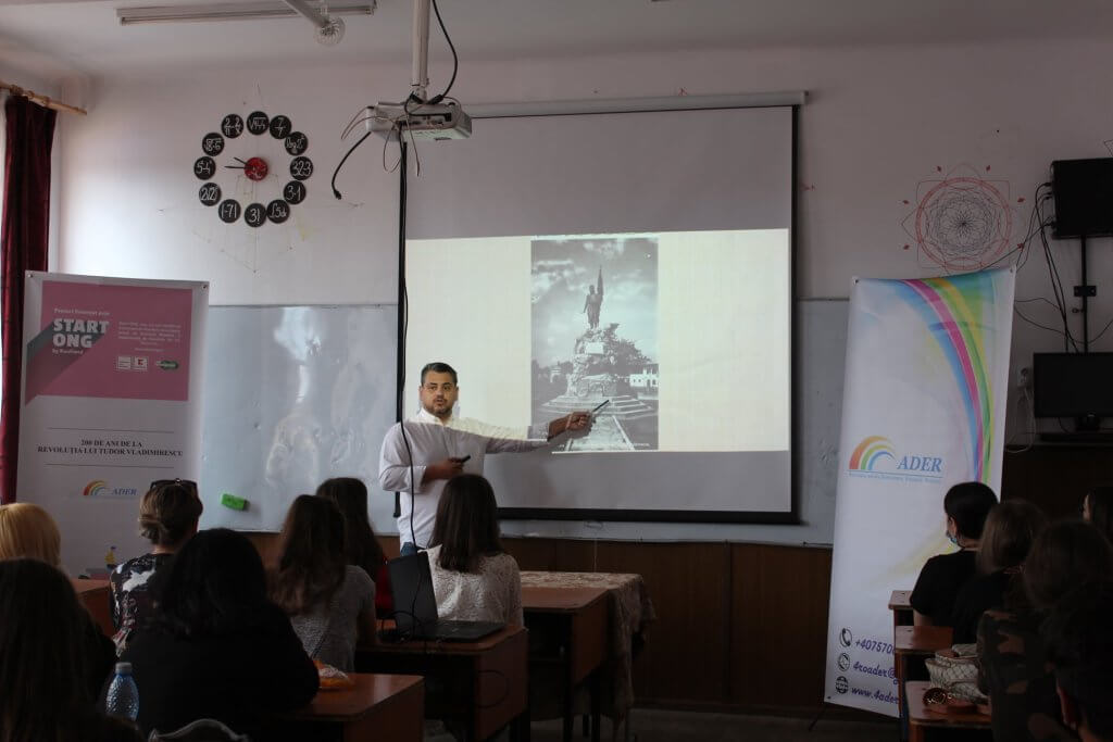 Peste 150 de elevi din clasele a IX–a și a-XII-a de la licee din Târgu-Jiu au participat la seminare interactive, ce se bazează pe metoda non-formală Philips 6-6, astfel: coordonatorul de proiect (alături de profesori de istorie) au prezentat tema, după elevii au urmărit un scurt documentar despre Revoluția lui T. Vladimirescu, iar după vizionare au fost împărțiți în grupe de 6 elevi, discutând pe echipe documentarul, iar apoi prezintând impresiile fiecăruia. Totodată, a fost organizat și un concurs online de eseuri pe tema proiectului pentru 15 elevi. Cele mai bune eseuri au fost publicate într-un volum cu ISBN, prin Editura Thoth.
