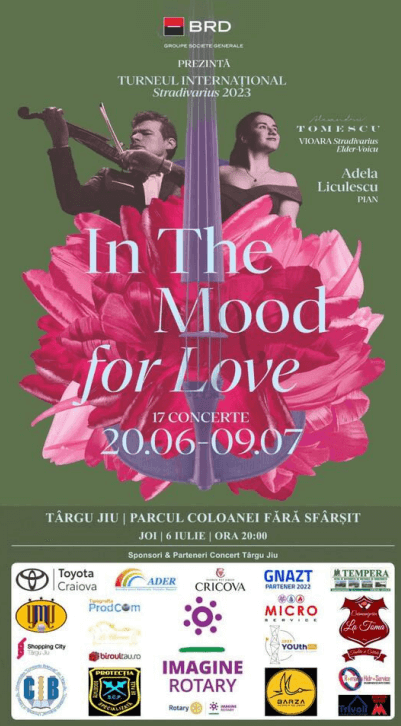 Asociația pentru Democrație Educație Respect, alături de diverși parteneri, a participat la organizarea, în data de 6 iulie, ora 20:00, în Parcul Coloanei fără Sfârșit, a Turneului Stradivarius 2023 „IN THE MOOD FOR LOVE”.